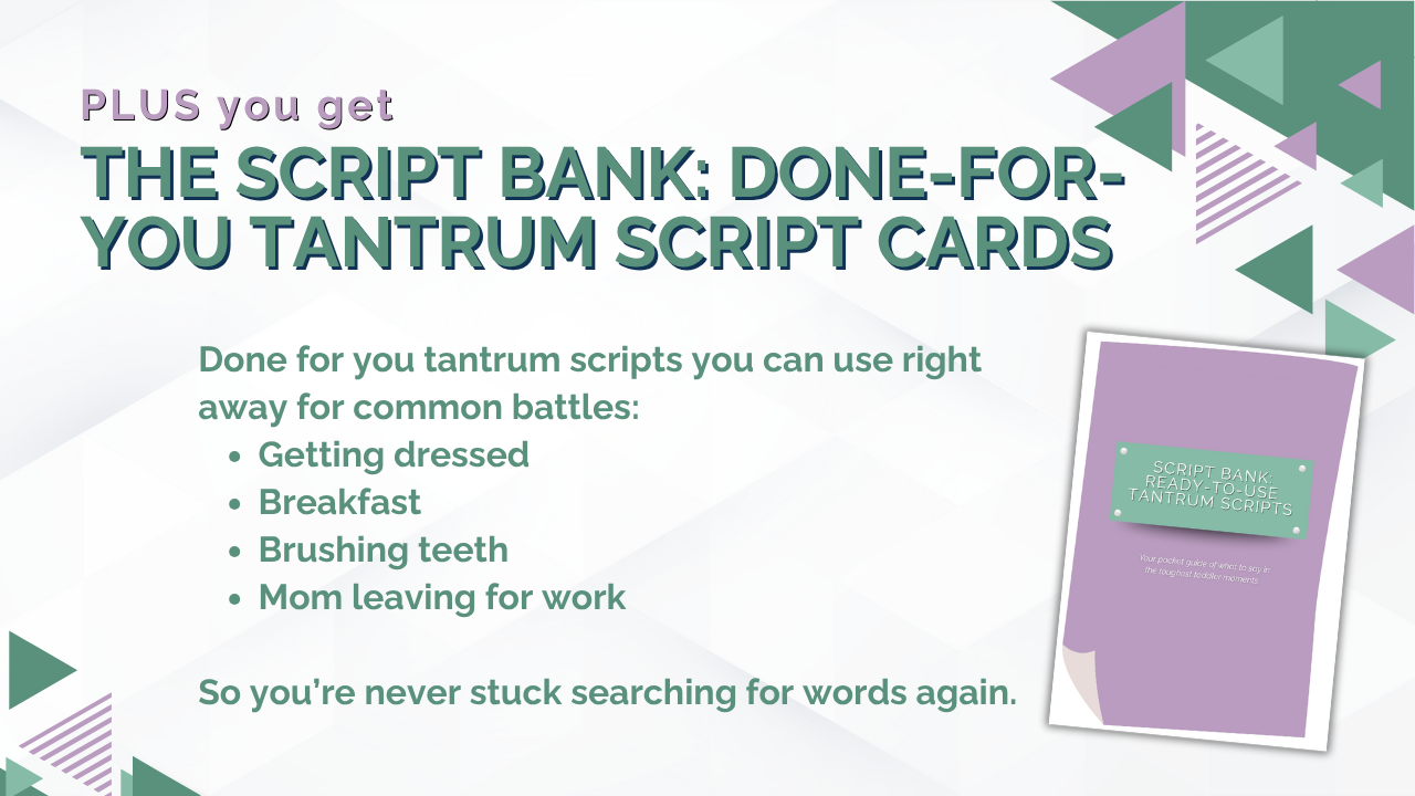 - Done-for-you tantrum script cards know exactly what to say in the heat of the moment.